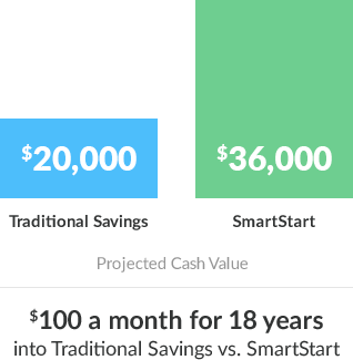 The additional amount of your regular payments is designed to help the cash value of the policy grow, tax-free, until your child withdraws it for a future need. SmartStart policies are designed to be flexible to meet your savings goals and your budget.